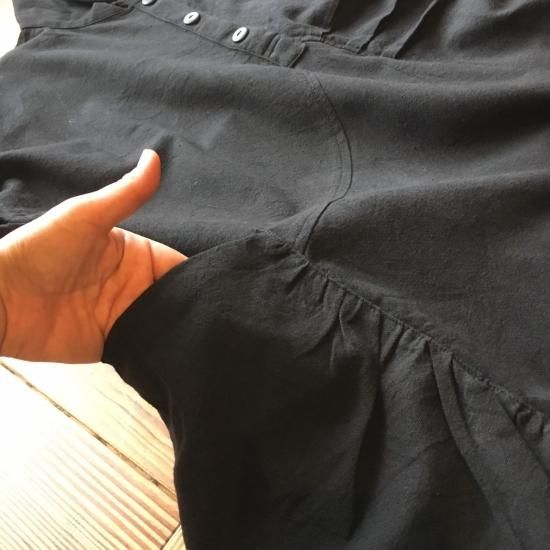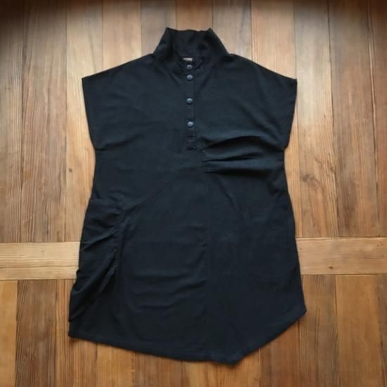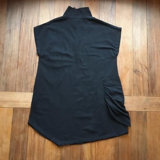 スポーティーなイメージの衿に、ギャザーのある大き目ポケットが印象的。ドロップ気味のフレンチスリーブは、そのまま着ても二の腕はカバーしてくれます。アシンメトリーなヘムラインの少し長め丈チュニックは、カジュアルで大人レディー的な着こなしに。
